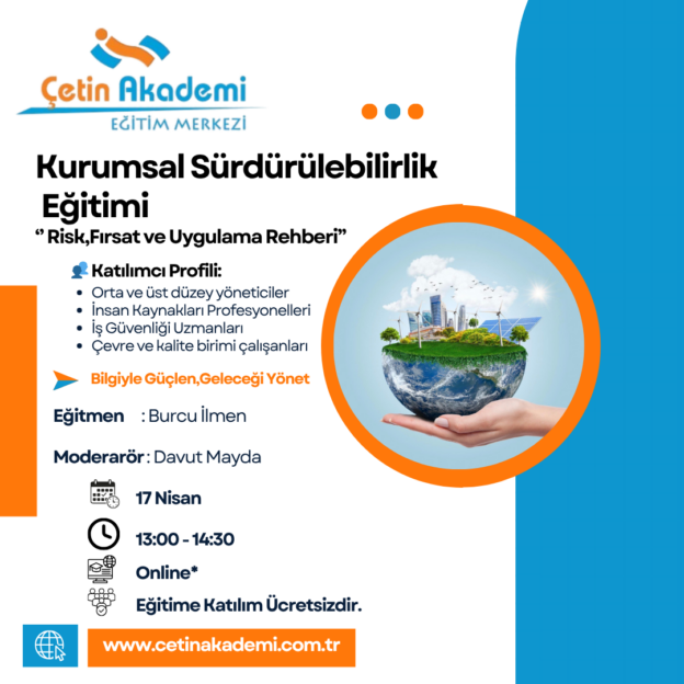 #Sürdürülebilirlik #KurumsalSürdürülebilirlik #İSG #İşGüvenliği #İnsanKaynakları #KurumsalGelişim #Eğitim #OnlineEğitim #ÇetinAkademi